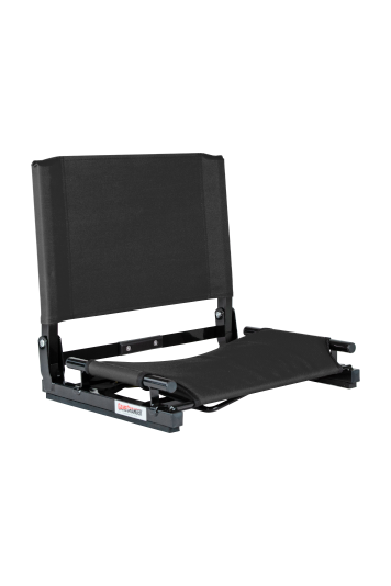 The GameChanger fits virtually any metal or wooden bleacher. Bottom hook secures to bleacher; rubber non-slip skids. Folds neatly; attached tote handle for easy carry